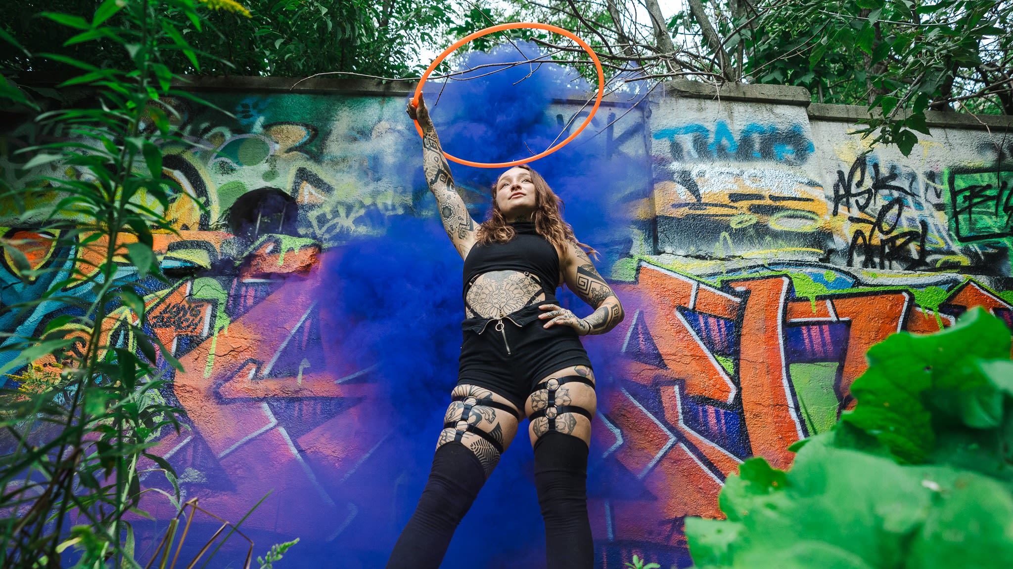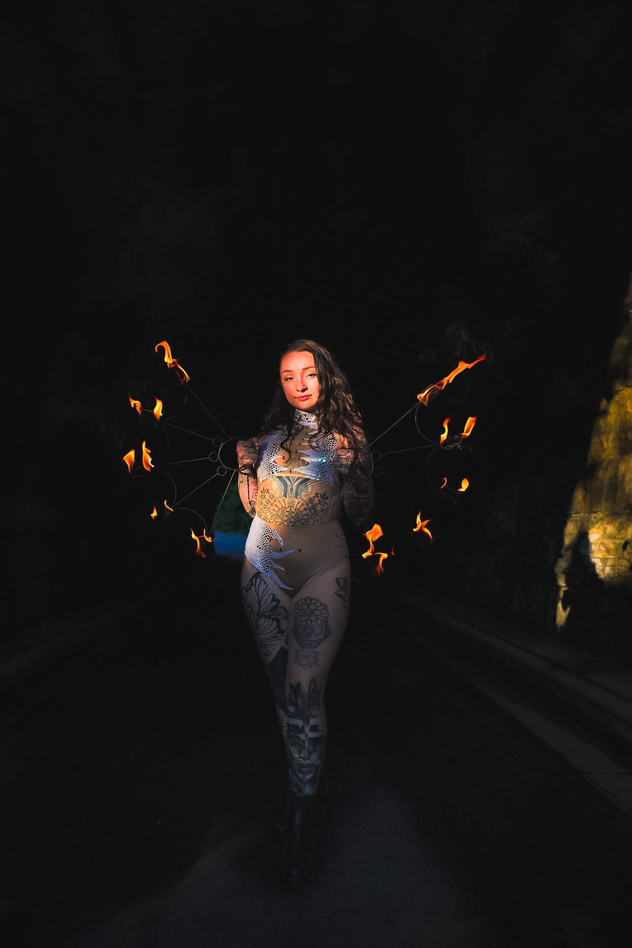 Her flow arts career started back in 2014 when she purchased her first hula hoop. Upon starting, she began to realize that what was intended to be just a hobby had captivated her heart and was turning into something much, much bigger. Only a year after Taylor had started her journey, she was receiving national bookings to perform at festivals and events. Taylor has performed all over the United States at festivals, parades, and private parties ever since. What started off as performances with a single hula hoop began to evolve into double hoops, fire hoops, fire fans, fire dragon staff, fire poi, and fire eating.